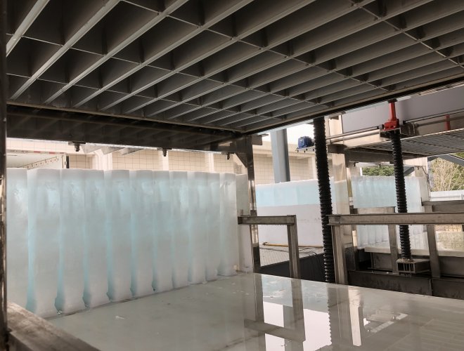 ●自動(dòng)化程度高,自動(dòng)上水、自動(dòng)制冰、自動(dòng)脫冰。脫冰后可直接推送裝車,也可將冰塊推送到輸送帶上,自動(dòng)輸送到冰庫(kù),自動(dòng)碼垛。